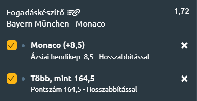 - Mindkét csapat gyors tempójú, támadó szellemű játékot játszik, és a védekezési hibák dönthetik el a mérkőzést. A találkozón legalább 170 pont várható, mivel egyik fél sem a védekezéséről híres, a kimenetel esetében, a müncheni rendezés miatt nagyjából 50-50 az esély, viszont a Monaco erősebb csapat, ezért őket segítem egy jókora plusszos hendikeppel!