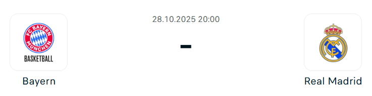 - A bajorok eddig messze elmaradtak a várakozásoktól: a tavalyi kilencedik hely után a nyáron elveszítették négy legjobb játékosukat, az új érkezők pedig egyelőre nem tudtak igazi áttörést hozni. A csapat 2–4-es mérlege még hízelgő is ahhoz képest, amit a pályán mutattak, és bár Andreas Obst és Vladimir Lucic továbbra is a fő vezérek, a támadójáték szervezetlen, hiszen a hátvédsorban senki sem tudta stabilan irányítani a csapatot. A vezetőség ezért is igazolta Spencer Dinwiddie-t, aki akár már ezen a meccsen bemutatkozhat, és komoly lendületet adhat a támadásoknak. A Real Madrid helyzete sem sokkal fényesebb: Sergio Scariolo együttese idegenben eddig minden sorozatban kikapott, legutóbb a Maccabi Tel-Avivtól szenvedett drámai vereséget, miután Tamir Blatt triplája a végén eldöntötte a meccset. A spanyol bajnok kulcsemberei formán kívül vannak, Campazzo és Tavares nem találja korábbi dominanciáját, Hezonja pedig kiszámíthatatlan, ami megnehezíti Scariolo munkáját. Trey Lyles legutóbb dupla-duplával villant, Chuma Okeke pedig szintén biztató teljesítményt nyújtott, de a Real egészében még messze a megszokott szintjétől. A jelenlegi formákat látva egy alacsony pontszámú, feszes védekezésen alapuló mérkőzésre van kilátás, ahol mindkét fél számára a küzdelem és a hibák minimalizálása dönthet,a Bayern számára a kemény védekezés, a Real Madridnak pedig a támadójáték rendezése lehet a siker kulcsa.