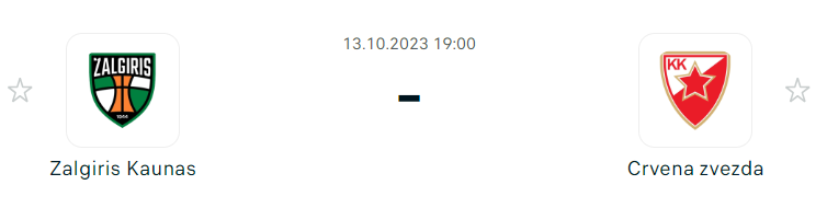 Az Euroliga második fordulójában, a nap egyik első mérkőzésén a Zalgiris a Crvena Zvezda ellen lép pályára, a találkozót 19:00 órakor kezdik a Zalgirio Arénában. Mindkét csapat győzelemmel kezdte az új szezont, ami önbizalommal tölti el őket a közelgő összecsapás előtt.