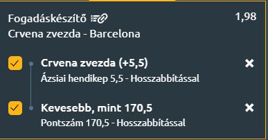 - A Crvena Zvezda hét hazai Euroliga-győzelemmel érkezik, erős védekezéssel, gyors átmeneti játékkal, és több kimagasló formában lévő egyéniséggel. Barcelona jelenlegi állapotában, két irányítóját is nélkülözve, valamint gyenge védekezéssel nem tűnik olyan csapatnak, amely Belgrádban meg tudná törni ezt a sorozatot. De azért egy kisebb plusszos hendivel megerősítjük a Zvezdát, mégiscsak a katalán gigász az ellenfél. A pontok tekintetében pedig, a Zvezda védekezése miatt, maximum 170 pont várható.