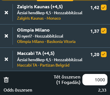 Egy meccs híján teljes fordulót rendeznek az Euroligában, egy kövér duplázót hoztam a mai napról három meccs felhasználásával. Lássuk!