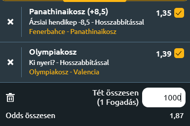 - Mindazonáltal ez egy török-görög párharc, amely mindig plusz energiákat mozgósít mindkét csapatban! A Panathinaikosz erős csapat, komoly kerettel, erős rotációval és jó támadási hatékonysággal. Lehet, hogy az utóbbi időszakban nem voltak túl erős formában, de egy ilyen rangadó fel fogja őket spannolni! Szoros meccset várhatunk, ahol +8,5-es hendikeppel a görögöket nyeretem!