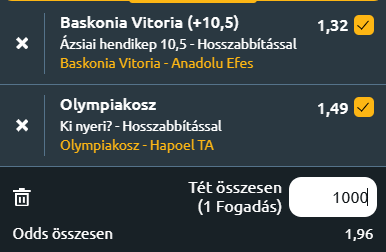 - Két bizonytalan csapat találkozik Vitóriában, ahol szoros mérkőzés várható. A Baskonia hét forduló után 1–6-os mérleggel áll, és csak legutóbb, a Dubai elleni 92–85-ös hazai sikerrel tudta megszerezni első győzelmét. Ez a diadal ugyan önbizalmat adhat, de a csapat játékában továbbra is sok a hiányosság, hiszen mind támadásban, mind védekezésben az Euroliga harmadik leggyengébb mutatóit produkálják. A legnagyobb pozitívumot Timothe Luwawu-Cabarrot játéka jelenti, a francia játékos 25 pontot dobott legutóbb, ebből 22-t a második félidőben, és eddig 20,7 pontos átlaggal a liga egyik legjobb egyéni formáját hozza. Mellette Kobi Simmons (16 pont) és Hamidou Diallo (14 pont, 8 lepattanó) is hozzátette a magáét, de a Baskonia rövid rotációja, különösen Markus Howard és Trent Forrest sérülése komoly gondot jelent. Az Anadolu Efes sem kezdett fényesen, hiszen Igor Kokoskov együttese 3–4-es mutatóval érkezik Vitoriába. Az előző fordulóban viszont nagy idegenbeli győzelmet arattak Párizsban (90–80), amelyben Shane Larkin 19 ponttal, döntő pillanatokban szerzett kosaraival vezette győzelemre csapatát. Ercan Osmani is kiemelkedett 18 ponttal és 6 lepattanóval, ám a törökök középső posztjai továbbra is problémásak, Georgios Papagiannis és Vincent Poirier sérültek, míg Kai Jones még nem tudott beilleszkedni az európai játékstílusba. Emellett az Efes támadójátéka túlzottan egyéni megoldásokra épül, amit a mindössze 15,9 gólpassz/meccs mutató is jelez, ez a második legrosszabb az egész Euroligában. Mindkét oldalon tehát akadnak hiányzók és kérdőjelek, de a Baskonia hazai pályán, az első győzelem lendületével és Luwawu-Cabarrot kiemelkedő formájával eséllyel küzdhet meg a hullámzó Efesszel. Szoros, kiegyenlített párharc várható, amelyben a Baskoniát egy komoly +10,5-es hendikeppel segítjük!