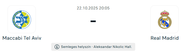 - A Maccabi Tel Aviv öt mérkőzés után mindössze egy győzelemmel áll, ám játéka időnként biztató jeleket mutatott. Az Olympiakosz ellen például szinte végig kézben tartották a találkozót, 13 pontos előnyt is építettek, mielőtt az utolsó percekben elvesztették volna a fonalat. Jeff Dowtin remek teljesítménye (24 pont, 6/7 tripla) biztató volt, ám Lonnie Walker hibás döntései és gyenge dobószázaléka miatt elúszott a bravúr. Az izraeli együttes számára most az lehet a legnagyobb kérdés, hogy Walker mikor kezdi el vezérként segíteni csapatát, mert a jelenlegi helyzetben tőle várják az áttörést. A Real Madrid is messze van attól a formától, ami egy Final Four-esélyes csapattól elvárható. Sergio Scariolo együttese ugyan Partizan ellen 35 percen át uralta a játékot és megmutatta, mire képes, ám ezt a Crvena Zvezda elleni katasztrofális vereség (75–90) követte. A királyiak idegenben különösen gyenge, minden EuroLeague-meccsüket elveszítették otthonuktól távol, és a bajnokságban is kikaptak Baskoniától! Statisztikailag a legjobb kétpontos dobócsapatnak számítanak és a második legjobb védekezéssel bírnak, a gyenge triplamutató (19% a legutóbbi vereség során) és a támadások közbeni rövidzárlatok sokba kerülnek. Összességében tehát egy olyan mérkőzésre van kilátás, ahol mindkét fél a stabilitását keresi. A Maccabi az utóbbi hetekben bizonyította, hogy képes felvenni a harcot a papíron erősebb ellenfelekkel, míg a Real Madrid továbbra is ingadozó teljesítményt nyújt idegenben.