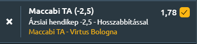 - Maccabi Tel Aviv lendületben van, és játékosai motiváltak, hogy megmutassák magukat az Euroligában. Bár a szezonban már késő a nagy fordításra, az utóbbi mérkőzéseken bizonyították, hogy képesek magas szinten teljesíteni. A Virtus ezzel szemben mély válságban van, és már két hónapja nem nyert Euroliga-meccset. A statisztikák és a forma alapján egyértelműen Maccabi az esélyesebb, és valószínűsíthető, hogy legalább hárompontos különbséggel nyerik meg a találkozót.