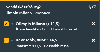 - Egyik csapat sem érkezik ideális állapotban, ám a problémák jellege eltérő. A Milano fő gondja a sérülések miatt hiányos rotáció, ami a támadójáték ritmusán és hatékonyságán is érződik. Az eddigi hárompontos-forma nehezen tartható hosszú távon, különösen, ha a kulcsjátékosok nincsenek teljesen bevethető állapotban. A Monaco oldalán ezzel szemben a védekezés rendezetlensége és a hullámzó teljesítmény jelenti a legnagyobb kérdőjelet. Támadásban erősek, védekezésben gyengébbek. A hazai pálya előnye abszolút kiegyenlíti az esélyeket, szoros mérkőzés várható, ahol a védekezés szerepe felértékelődik! A pontok tekintetében éppen ezért nem várható 174-nél kevesebb, ami pedig a kimenetelt illeti nem várható kétszámjegyű különbség sem ide, sem oda. Én a hazaiakat segítem +12,5-hendivel.