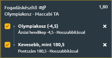 - Minden körülmény az Olympiakosz sikerét vetíti előre. A görögök hazai pályán játszanak, és motiváltak, hiszen egy vereség akár az első helyükbe is kerülhetne. Minden poszton előnyben vannak a Maccabival szemben, ráadásul a vendégek hosszú szezonon vannak túl, amelyet súlyos külső körülmények, sérülések és gyenge forma jellemzett. Bár az izraeli csapat képes váratlanul kiugró teljesítményt nyújtani, volt már ilyen a szezonban, nehezen hinném, hogy ez ma az egyik legjobb gárda otthonában megtörténhet. Kicsi mínuszos hendiről nyeretem az Olympiakoszt, és a jó védekezés-, és a Maccabi kilátástalan helyzete miatt nem várható több, mint 180 pont a meccsen – 1,80