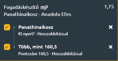 - Az első összecsapáson a Panathinaikos győzött, de inkább a vendégek összeomlása, mintsem a görögök következetes játéka miatt. Ha Efes képes elkerülni a végjátékbeli hibákat és visszatalál korábbi lendületéhez, eséllyel pályázik az egyenlítésre. A palánk alatti fölény, valamint a mély és tapasztalt hátvédsor (különösen Larkin révén) erőssége lehet a törököknek. A Panathinaikos ezzel szemben már bizonyította, hogy ha kell, képes mentálisan felülkerekedni a nehézségeken – Hernangomez formája kulcskérdés lehet. Hazai pályán le kell hoznia a második győzelmet a Panathinaikosznak, mert különben Törökföldön bajba kerülhet. Szoros meccs várható, de meglesz a görög győzelem és minimum 161 pont is születik.