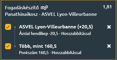 A Panathinaikosz hazai csarnokban fogadja a francia Lyon gárdáját. A görög csapat nyilvánvalóan esélyesebb, de az eddig játéka nem volt még teljesen meggyőző, a bukik által kiajánlott szorzópár mindenképp túlzottnak tűnik! Ezt pedig hendikeppel ki lehet használni!