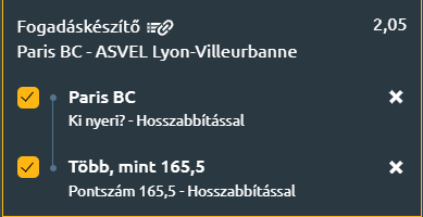 - A párizsiak még vereség esetén is kitartanak játékstílusuk mellett, és ebben rejlik erejük. Bár a két csapat hasonló erőt képvisel, a forma és a hazai pálya és a nagyobb stabilitás miatt Paris valamivel esélyesebb. Az Asvel már kétszer legyőzte őket idén, de harmadszor ezt megismételni nagyon nehéz feladat lesz, így mindenképpen hazai meccsgyőzelmet várok és mellette az over irányból közelítek a pontok terén.