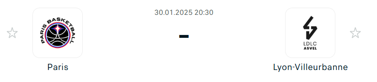 - A Párizs BC nehéz időszakon ment keresztül az előző év végén és az idei év elején, amikor hét mérkőzésből csupán egyet tudott megnyerni, azonban azóta látványosan javult a teljesítményük, és az utóbbi hat találkozójukból ötöt győzelemmel zártak. Jelenleg 13-9-es mérleggel állnak, hazai pályán pedig különösen erősek, hét győzelemmel és mindössze három vereséggel. A sikerek egyik kulcsfigurája a vezetőedző, Tiago Splitter, akinek a munkája a szezon végére igazán beért, így abszolút pozitív meglepetése az idei Euroligának! A fővárosi a csapat rendkívül mély kerettel rendelkezik, Splitter pedig előszeretettel rotálja játékosait, amire szükség is van, mivel a Paris nagy intenzitású játékstílusa miatt folyamatos pihentetésre van szüksége mindenkinek. A szezon egyik legjobb játékosa TJ Shorts, aki bizonyította, hogy az Európa-kupa után az Euroligában is meghatározó lehet. Nadir Hifi a második legfontosabb játékos, ám agresszív stílusa olykor megbosszulja magát. A csapat támadójátéka kevésbé épít a gólpasszokra, hiszen az Euroligában ők szerzik a legkevesebb pontot asszisztból. A párizsiak különösen motiváltak lesznek, hiszen az Asvel idén már kétszer is legyőzte őket, így itt a lehetőség a visszavágásra. A Lyon védekezésére kell majd figyelniük, de hazai környezetben mindenképpen esélyesebbek, mint az Asvel.