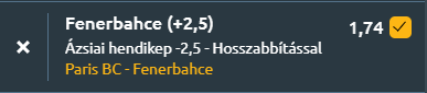 - Először 2025. március 2-án találkozott a két csapat. Ekkor a Párizsban rendezett mérkőzésen a Fenerbahce 87–83-ra győzött. A Párizs az első negyedben tízpontos előnyt szerzett, de a török csapat fokozatosan ledolgozta a hátrányt, és a végjátékban fordított. Másodszor 2025. március 25-én meccseltek. Ekkor Isztambulban a Fenerbahce 101–100-ra nyert egy rendkívül kiélezett találkozón. A Paris Basketball a harmadik negyedben 33 pontot szerzett, de a hazai csapat a negyedik negyedben 30 ponttal válaszolt, és egy ponttal megnyerte a mérkőzést. A Fenerbahce egyértelműen erősebb csapat, nem véletlen, hogy a Paris még egyszer sem tudta őket legyőzni idén négy próbálkozásból. Ma sem fog sikerülni, de egy kicsike plusszos hendikeppel meg is lehet erősíteni a Fener győzelmét. Fenerbahce + 2,5