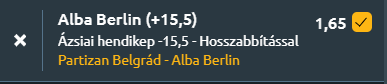 - A Partizan mély válságban van, amit a három egymást követő Euroliga-vereség és különösen az Anadolu Efes elleni összeomlás is bizonyít. A csapat formája bizonytalan, és egyik kulcsjátékos sem nyújt megbízható teljesítményt. Ezzel szemben az Alba Berlin lendületbe jött az edzőváltás után, és teljes kerettel érkezik Belgrádba! Nyilván a hazaiak esélyesebbek, de a szorzók, szerintem el vannak csúszva! Nem fog 15 pontnál többel nyerni a hazai csapat!