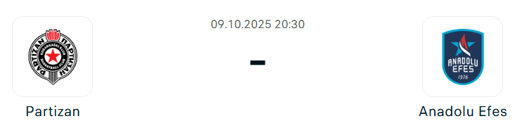 A Partizan hazai csarnokban fogadja a mindig veszélyes Anadolu Efes együttesét. Mindkét csapat 1–1-es mérleggel áll az Euroliga első két fordulója után, a belgrádiak a hazai pálya erejében bíznak, míg a törökök jó formában érkeznek a szerb fővárosba.