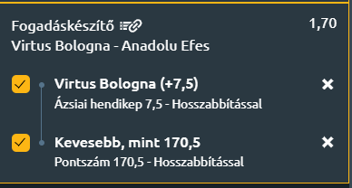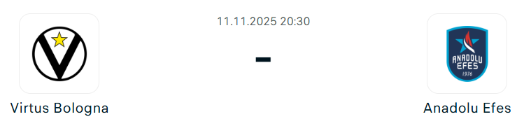 A Virtus Bologna hazai környezetben fogadja a török Anadolu Efes csapatát. Mindkét csapat teljesítménye elmarad a várakozásoktól, így mindkettőnek egyre sürgetőbb, hogy nyerni tudjanak végre.