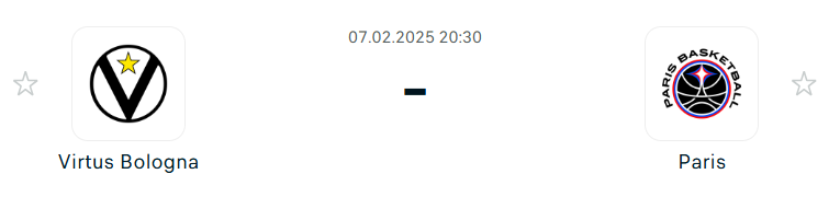 - A Paris BC szezonja ezzel szemben óriási meglepetés volt, főként az idény első felében, amikor tízmeccses győzelmi sorozatot produkáltak, és 11-2-es mérleggel álltak. Az utóbbi hónapokban azonban visszaesett a formájuk, jelenleg 14-10-es mérleggel rendelkeznek. Legutóbbi mérkőzésükön az Olympiacos ellen 90-73-as vereséget szenvedtek, ahol Nadir Hifi 19, T.J. Shorts pedig 15 pontot szerzett, de ez kevésnek bizonyult. A visszaesés egyik fő oka, hogy a csapat védekezése meggyengült, és ellenfeleik egyre jobban kiismerik gyors tempójú játékukat. Az Olympiacos elleni találkozón a görögök már az első negyedben eldöntötték a meccset, amikor hét perc alatt 20 pontos előnyt építettek ki. Paris kis szerkezetű csapata nem találta az ellenszert Moustapha Fall játékára, aki folyamatosan kihasználta a védelmi hibáikat. Ha a Paris nyerni akar a Virtus ellen, akkor diktálnia kell a tempót, és minél több gyors támadást kell vezetnie, mert egy lassú, fizikális mérkőzés kedvezne az olaszoknak.