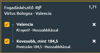 - A jó formában lévő, motivált Valencia nagyobb minőséget képvisel, és várhatóan magabiztosan nyer, és nem lesz 184 pontnál több a meccsen!