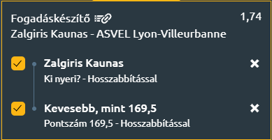 - A mérkőzésen a Zalgiris az egyértelmű esélyes, még akkor is, ha két nappal korábban egy kemény meccset játszott, ami némileg visszafoghatja az intenzitását. Ez adhat némi esélyt az Asvelnek, hogy a vártnál szorosabbá tegye az összecsapást. De a hazaiak győzelmét nem fogják veszélyeztetni és a hazaiak kiváló védekezése miatt nem lesz 170 pont a mérkőzésen.