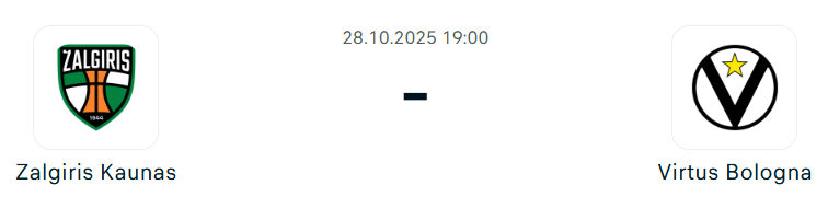 - A litván együttes az idény egyik legnagyobb pozitív meglepetése, hiszen már a szezon elején legyőzte a tavalyi döntős Fenerbahcét és Monacót, valamint Münchenben a Bayern ellen is diadalmaskodott, majd Barcelonában aratott 88–73-as fölényes győzelmével újra megmutatta erejét, így hat forduló után 4–2-es mérleggel áll. A Barcelona elleni találkozón megsérült Nigel Williams-Goss, a csapat ennek ellenére továbbra is lendületben van, Sylvain Francisco vezérként irányítja a játékot 13,5 pontos és 6,5 gólpasszos átlaggal, míg Moses Wright szintén remek formát mutat, 12,8 pontot és 5 lepattanót hozva meccsenként. Goss hiányában Maodo Lo szerepe felértékelődik, aki már bizonyította képességeit a katalánok ellen elért hibátlan triplázásával. Virtus Bologna szintén 4–2-es mérleggel érkezik, és a Real Madrid, Monaco, Asvel és Panathinaikos elleni győzelmekkel jelezte, hogy komolyan számolni kell vele. Carsen Edwards továbbra is stabil pontszerző, míg Alen Smailagic, Matt Morgan és Alessandro Pajola is kulcsfontosságú teljesítményeket nyújtanak, utóbbi sokoldalúságával egyensúlyt teremt a csapatban. A festékben Niang és Diouf kemény védőpárosa döntő szerepet kaphat Wright semlegesítésében.