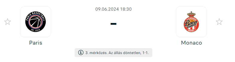A Paris és a Monaco összecsapása a francia LNB bajnokság döntőjének harmadik mérkőzése lesz, amelyet Párizsban rendeznek. A párizsi csapat remekül játszik Toumas Ilsalo irányítása alatt, és már két trófeát nyertek. Most lehetőségük van a harmadik megszerzésére. Az első meccsen alulmaradtak, de a második meccsen sikerült visszavágni, így most 1-1 után jöhet a harmadik találkozó a francia fővárosban.