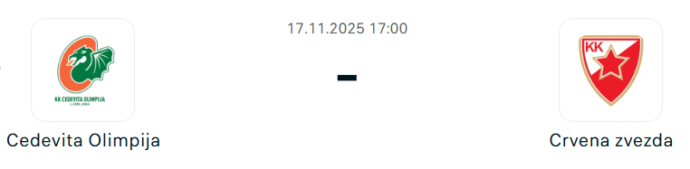 - A rendelkezésre álló adatok alapján a Cedevita Olimpija erős támadójátéka, kiváló triplamutatója és magas tempója, valamint a Crvena zvezda sérülései és fárasztó Euroliga-hete egyértelműen egy pontgazdag mérkőzés irányába mutatnak. Legalább 169 pontot dobnak majd együttesen!