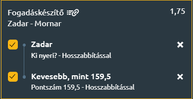- Mindkét csapat a liga leggyengébb támadógépezetei közé tartozik, és bár a Zadar némileg stabilabbnak tűnik hazai környezetben, ők sem túl ponterősek. A Mornar gyakorlatilag már lemondott az idényről, minimális esélye maradt a bennmaradásra, és a motiváció is kérdéses lehet. A kulcs a védekezés lehet: a Zadar sok váltással operáló védelme és centerfölénye dominálhat egy széteső Mornar ellen. Nyer a Zadar és nem lesz 160 pont sem a meccsen.