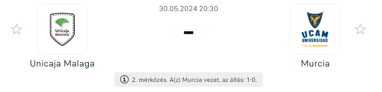 A spanyol élvonalbeli kosárlabda liga rájátszásának elődöntős párharcában vagyunk. Az Unicaja Malaga kezdett otthon, nekik volt meg a pályaelőny, de a Murcia az első meccsen meglepetést okozott és 88-79-re nyertek vendégként! Ez azt jelenti, hogy az Unicaja elveszítette a hazai pályaelőnyt, ráadásul ma extrán nehezedik rájuk a győzelmi kényszer, hiszen ha kétszer is kikapnának hazai körülmények között, az már-már kiesést jelentene.