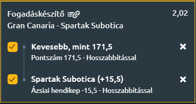 - Az eddigiek alapján a Gran Canaria egyértelmű esélyesként várja a találkozót, hiszen hazai pályán, kiegyensúlyozott játékkal és elit védekezéssel (mindössze 95 kapott pontot engednek 100 támadásra vetítve) nehéz lesz őket felülmúlni. A Spartak idegenben általában gyengébb teljesítményt nyújt, és a hosszú utazás is hátrányt jelenthet számukra. Mindezt figyelembe véve egy alacsonyabb pontszámú, szorosabb mérkőzés várható, ahol a Gran Canaria valószínűleg érvényesíti minőségi fölényét és megőrzi hibátlan mérlegét, de nem lesz 15 pontnál nagyobb különbség közötte!