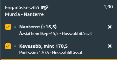 - A mérkőzés esélyeit elemezve kijelenthető, hogy a Murcia hazai pályán esélyesebb, különösen mélyebb keretének és jobb lepattanózásának köszönhetően. A Nanterre számára a siker kulcsa a gyors támadások és a labdaszerzések lehetnek, összességében olyan nagyon nagy különbség nincs közöttük, ezért a hazai győzelem, ami alapvetően erős esély, nem lesz 15 pontos különbségnél több. Mivel mindkét csapat inkább defenzív játékot játszik, és óvatosan kezdi majd a Top 16 szakaszt, várhatóan kevés pont születik. Az under oldaláról közelítek.