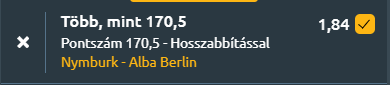 - A mérkőzés előtt az Alba Berlin elvesztette legponterősebb játékosát, de még így is fel fogják venni a kesztyűt a nagy rohanásban, hiszen a Nymburk kiváló formában, hazai közönség előtt lép pályára. A csehek támadójátéka lendületes, és legutóbbi otthoni meccsükön 115 pontot dobtak! A pontok száma meg fogja haladni a 170-et!