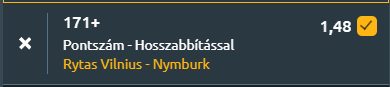 - A Rytas támadásban kiemelkedő formát mutat és hazai pályán igyekszik érvényesíteni fölényét, míg a Nymburk kulcsjátékosok elvesztése után is küzdőképes maradt, de nehéz helyzetbe került. A mérkőzés képe a hazaiak dominanciáját vetíti előre, akik akár magabiztos különbséggel is nyerhetnek és 171,5 over pont várható! A kettő együtt nem játszható, vállaható hendikep nincs, így marad csak az over magában!
