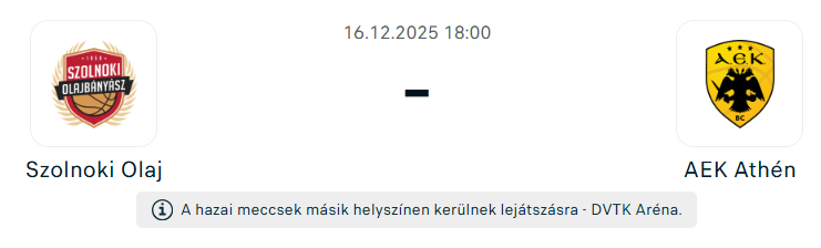 A felemás formában lévő Szolnoki Olaj az eddig hibátlan mérleggel álló AEK Athens együttesét fogadja a FIBA Bajnokok Ligájában. Nagyon nehéz meccs lesz!