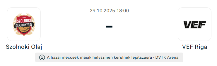 - A Szolnoki Olaj a hazai bajnokságban tökéletes formát mutat, miközben a Bajnokok Ligájában eddig ötven százalékos teljesítményt nyújtott. Vedran Bosnic vezetőedző jól kombinálja a hazai és külföldi játékosokat, és a csapat képes gyors átmenetekből sok pontot szerezni, miközben a padról is komoly segítséget kap, ami a keret mélységét mutatja. Letre Darthard formája emelkedő, Holt további pontszerzéssel járul hozzá, Brady Skeens dominál a lepattanókban, Adin Vrabac pedig mindkét oldalon fontos szerepet vállal. Somogyi Ádám szintén kulcsszereplő a hazai játékban. A VEF Riga az idény elején gyengén kezdett a Bajnokok Ligájában, különösen a Levice elleni súlyos vereség rontotta az esélyeket, miközben a hárompontos hatékonyságuk is gyenge volt 30% alatt, és a lepattanókban is problémáik voltak. Zahir Porter eddig következetesen teljesített, Rostyslav Novitskyi szintén dupla számjegyű pontot szerzett, de a többi játékos alulteljesített, és a gólpasszok is kevesebbek a hibákhoz képest. Azonban a csapat ereje alapján várható, hogy mindent megtesznek a jó szereplésért és egy esetleges meglepetésért.