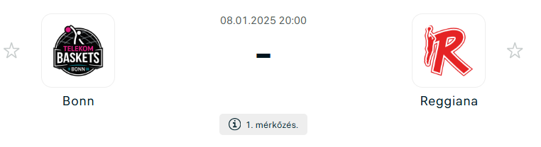 A kosárlabda Bajnokok Ligájában csap össze a Bonn és a Reggiana. A BL a kosárlabdasportban csak a harmadik számú sorozat, bár évről-évre fejlődik, presztízse növekszik. A hazai csapat támadóerejére és pontszerző képességére épít, míg a vendégek szigorú védekezésükkel próbálják majd megállítani ellenfelüket. A találkozó kulcsa az lesz, hogy Bonn képes lesz-e áttörni Reggiana erős védekezését.