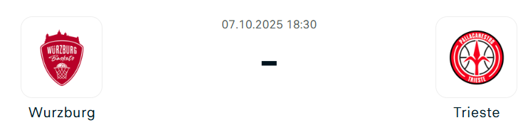 Németországba utazunk, ahol szintén BL-csoportkörös mérkőzést rendeznek. A Würzburg hazai pályán fogadja az olasz Trieste csapatát. A két együttes teljesen más előjelekkel érkezik a találkozóra: a Würzburg hibátlanul kezdte a szezont, míg a Trieste az olasz bajnokság nyitányán vereséget szenvedett.