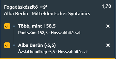 - A jelenlegi forma, a statisztikák és a keretek állapota alapján Alba Berlin egyértelmű favorit. A fővárosiak jelentősen javultak védekezésben, jól dobnak kintről, és a palánk alatti dominanciájuk komoly előnyt jelent majd egy olyan csapat ellen, amely éppen a lepattanózásban szenved. A Syntainics támadópotenciálja veszélyes lehet, de az idegenbeli gyenge teljesítmény és a szűk rotáció hátrányt jelenthet egy fizikailag és taktikailag is erősebb Alba ellen. Kis mínuszos hendikepről is nyerhet az Alba és a támadójáték miatt lesz 159 pont a meccsen!