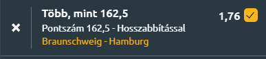 - A mérkőzés várhatóan egy pontgazdag találkozót hoz majd, hiszen a Braunschweig támadójátéka az utóbbi időben sokat fejlődött, míg a Hamburg alapvetően is egy támadásorientált csapat. Mindezek alapján a legvalószínűbb forgatókönyv az, hogy a pontszám meghaladja a 161-et.