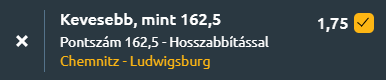 - A Chemnitz a szezon kritikus szakaszában van, de jelenlegi formája alapján nem sok biztató jel mutatkozik – különösen a védekezésük összeomlása Alba Berlin ellen nem sok jót ígér mára sem. Ugyanakkor hazai pályán kötelező lenne javítani, főként a rájátszásért folytatott harc miatt. A Ludwigsburg lendületbe jött, játékosai egyre jobb formát mutatnak, és bő rotációjuk is segíti őket a fizikai csatákban. Inkább egy küzdelmes, defenzív találkozó várható, ahol mindkét gárda igyekszik megfojtani a másik támadójátékát. Az spanyol meccsen overt, itt pedig undert kell választani!
