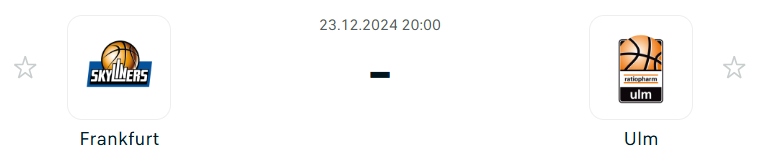 - Az Ulm jelenleg a Bundesliga második helyén áll, hét győzelemmel és három vereséggel. Bár a szezon során időnként hullámzó formát mutattak, legutóbbi hét meccsükből hatot megnyertek. A legutóbbi fordulóban ugyan szoros vereséget szenvedtek a listavezető Heidelbergtől (67-69), de előtte az EuroCupban lenyűgöző 114-91-es győzelmet arattak a Wolves ellen. A támadójátékuk erős és hatékony, amit az is bizonyít, hogy hat játékos is kétszámjegyű pontot ért el legutóbb. Különösen Alfonso Plummer és Marcio Santos mutatott kiemelkedő formát, utóbbi 20 pontot dobott. Azonban a csapat kulcsfigurája, Ben Saraf gyengébb teljesítményt nyújtott legutóbb, így az ő visszatalálása a formájához kulcsfontosságú lesz. De hát nincs is jobb lehetőség a visszatalálásra, mint egy gyenge Frankfurt elleni meccs. Az Ulm védekezése problémás, hiszen az EuroCupban a legrosszabb védelmi mutatóval rendelkeznek. Ennek javítása kritikus feladat, miközben a támadójátékuk gördülékenységét és a lepattanók kontrollálását is fenn kell tartaniuk.