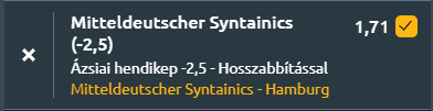 - A Syntainics hazai pályán eddig jól szerepelt, mindössze három vereséget szenvedett el otthon, és ezúttal is komoly előnyt jelenthet a hazai környezet. A Hamburg idegenben gyenge formát mutatott, főleg a védekezésük omlott össze, ami egy ilyen jó támadópotenciállal rendelkező hazai csapat ellen könnyen végzetes lehet. Bár egyik fél sem tökéletes, a Syntainics hazai ritmusban sokkal erősebb, és ha képesek limitálni a Hamburg kulcsjátékosait, különösen Brey Ivey-t, akkor kézben tarthatják a mérkőzést. Pici hendikepről indítom a hazaiakat.