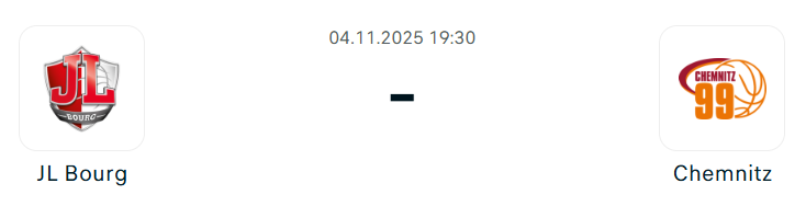 - A Bourg hullámzó teljesítménye után egy fontos győzelemmel érkezik a találkozóra, amely elsősorban az önbizalom szempontjából volt jelentős, hiszen az elmúlt hetekben több gyenge meccset produkáltak. A francia bajnokság hatodik fordulójában elért sikerük egy kiemelkedő első negyednek volt köszönhető, amely során 14 pontos előnyt építettek ki, és ezt magabiztosan megőrizték a végéig. A támadólepattanók terén Bourg dominált, összesen 17-et szedtek vissza, miközben Darius McGhee 18 ponttal és hat gólpasszal vezette a csapatot, Assemian Moulare pedig 17 ponttal tűnt ki. A Chemnitz szintén jó formában van, miután két győzelmet aratott egymás után, előbb az EuroCupban Ulm ellen 89–78-ra, majd a Bundesligában Braunschweig ellen 93–75-re. Bár a Braunschweig elleni meccs nem indult jól, a támadójátékuk a második negyedtől felélénkült, és 73 pontot szereztek a hátralévő három negyedben, mindezt 32%-os mezőnymutatóval, amit 28 gólpasszal kompenzáltak. Kevin Yebo 19 ponttal ismét remekelt, Ty Brewer 16 ponttal és nyolc lepattanóval segítette a csapatot, míg Corey Davis az utóbbi két meccsen összesen 38 pontot és 18 gólpasszt jegyzett. A vendégek három játékosukat nélkülözni kényszerülnek, John Newman, Roman Bedime és Julian Steinfeld nem állnak rendelkezésre.