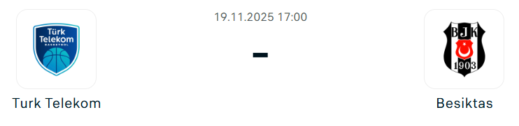 - A Türk Telekom a szezon elején problémákkal küzdött, de az utóbbi időszakban elképesztő formát mutat, hiszen sorozatban hat győzelmet arattak! A török bajnokságban legyőzték a Galatasarayt és a Karsiyakát hazai pályán, valamint Mersint idegenben, míg az Eurokupában a London Lions, Panionios és Lietkabelis ellen is domináltak. Sok meccset nagy különbséggel nyertek, legutóbb Litvániában 100–74-re, előtte otthon 95–67-re diadalmaskodtak Panionios ellen. A csapat legnagyobb erőssége a kiváló védekezés, hiszen az Eurokupában a második legjobb védelmi mutatóval rendelkeznek, kevesebb pontot engednek ellenfeleiknek. A játékosok közül Jaleen Smith és Marko Simonovic nyújt kiemelkedő teljesítményt, Kyle Alexander pedig folyamatosan javul. Az erős védelem, a gyors tempó és a hazai pálya mind azt jelzik, hogy a Türk Telekom komoly esélyekkel lép pályára.
