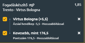 - A Trento támadójátéka kiemelkedő, de a Virtus tapasztaltabb kerettel rendelkezik, jól védekezik, és a Barcelona elleni győzelmük lendületet adhat számukra. Ha sikerül kontrollálniuk Lamb és Ford dobóformáját, valamint megőrzik a védekezés stabilitását, esélyesek lehetnek a győzelemre. Trento számára a hármasok hatékonysága és a támadójáték sebessége lehet a kulcs, de Virtus minőségbeli fölénye, inkább az ő oldalukra billenti a mérleg nyelvét. A Virtust erősítem +5,5-ös hendikeppel és kevesebb pontot várok, mint 177!