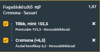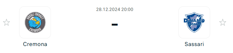 - A mérkőzés várhatóan szoros küzdelmet hoz, de Cremona számára létfontosságú, hogy hazai pályán megnyerje ezt a találkozót. Sassari formája javuló tendenciát mutat, de védekezésük még nem az igazi. A Cremona teljes kerettel áll ki, és motivációjuk maximális, hogy elkerüljék a kiesést. Ez a találkozó lehetőséget kínál számukra, hogy megmutassák, képesek fordítani a helyzetükön. Van esély a hazai győzelemre, ezt egy +6,5-ös hendikeppel megerősítjük, valamint minimum várhatunk 156 pontot a meccsen.