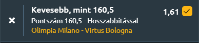 - Az Olimpia Milano számára ez az idény eddig csalódás minden szinten. Az EuroLigában sorozatban harmadszor maradtak le még a play-inről is, az olasz bajnokság alapszakaszát pedig csupán ötödik helyen zárták (20–10-es mérleggel). A negyeddöntőben viszonylag simán jutottak túl a Trentón (3–1), de az elődöntőben már komolyabb falba ütköztek. Az első meccsen kis híján idegenbeli győzelmet arattak, de végül 68–67-re alulmaradtak. A második találkozón még sikerült egyenlíteniük tökéletes játékkal, ám a harmadik mérkőzésen hazai pályán sem tudtak dominálni, és 78–68-ra kikaptak. Nikola Mirotic 21 pontjával a csapat egyedüli húzóembere volt, míg Shavon Shields 14 ponttal segítette a támadást, de más érdemi teljesítménye nem volt. Ráadásul Josh Nebo és Nenad Dimitrijevic továbbra is sérültek, ami jelentősen csökkenti Ettore Messina rotációs lehetőségeit és a belső védekezés hatékonyságát. Nem néz ki jól!