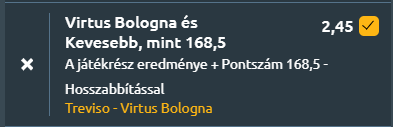 - A Treviso támadógondjai és felemás védekezése nehezen fér össze a Virtus stabilitásával és hatékony hátvédjátékával. Mindezek alapján egy alacsonyabb pontszámú, defenzívebb találkozót várhatunk, ahol a Treviso csak kemény védekezéssel maradhat versenyben! A Virtus győzelme úgyszólván kötelező, míg a pontok tekintetében nem váratunk többet, mint 168,5!