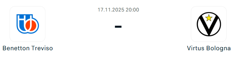 - A Treviso rendkívül gyenge formában érkezik a mérkőzésre, hiszen az elmúlt öt Serie A-találkozóból négyet elveszített, és mindössze egyetlen szoros, 89–88-as idegenbeli sikert tud felmutatni Reggiana ellen. A problémák egyértelműen a védekezésben gyökereznek, hiszen vereségeik során 86 és 107 közötti pontmennyiséget engedtek ellenfeleiknek, míg legutóbbi fellépésükön az erős Milano 87–63-ra győzte le őket, teljesen lefojtva Treviso támadójátékát. Hét forduló után így hat vereséggel és egyetlen győzelemmel a 15. helyen állnak a 16 csapatos mezőnyben. A csapat leginkább a szaúdi Muhammad Ali Abdur-Rahkman játékára támaszkodik, aki 16.4 pontot és kimagasló, 61.8%-os kétpontos mutatót hoz. Osvaldas Olisevicius 16.0 ponttal, 35.3%-os triplázással és 5.1 lepattanóval segít, míg Joe Ragland 12.9 ponttal és remek 8.6 gólpasszal irányítja a támadások nagy részét. A festékben Matteo Chillo és Kruize Pinkins viszi a terhet, utóbbi 13.0 ponttal és hét lepattanóval. További hír, hogy Briante Weber visszatérhet sérüléséből.