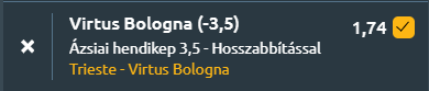 - A Virtus Bologna nincs csúcsformában, hiszen az utóbbi öt mérkőzéséből csak egyet tudott megnyerni. A Serie A-ban először legyőzték a Milánót és a Trentót, majd meglepő vereséget szenvedtek a sereghajtó Napoli ellen. Ez a vereség különösen fájó lehetett számukra, mivel így elvesztették az esélyt arra, hogy biztos előnyre tegyenek szert a bajnokság élén. Legutóbb az Euroligában a Maccabi Tel Aviv ellen is kikaptak (77-67), ami tovább mélyítette a gödröt. Pozitívum azonban, hogy Will Clyburn visszatért a sérüléséből, és bár még nem illeszkedett tökéletesen a csapatba, minőségi játékos, aki komoly erősítést jelenthet. A Virtus számára ez a mérkőzés kulcsfontosságú lehet, hiszen egy gyengélkedő Trieste ellen kellene visszatalálniuk a győzelmi útra. A bolognaiak már egyre inkább a hazai bajnokságra koncentrálnak, és ha komolyan gondolják a rájátszásbeli helyezéseiket, akkor ezt a meccset kötelező megnyerniük.
