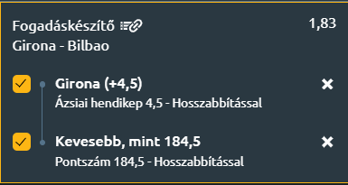 - A hazai pályán eddig stabilabban teljesítő, önbizalomtól duzzadó Girona esélyesnek tűnik a folytatásra, míg a Bilbao idegenbeli gyengélkedése és pontszerzési nehézségei alapján nehéz helyzetben várja ezt az összecsapást. A tipp áll egyfelől egy +4,5-es hendikeppel megerősített Girona-győzelemben, másfelől pedig egy kevesebb, mint 184,5 pont-opcióban, amit a gyenge támadási hatékonyság indokol!