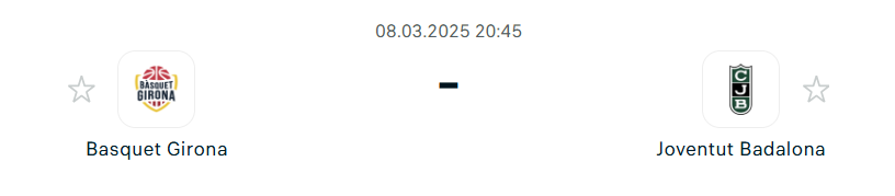 - A Joventut az idény során jó teljesítményt nyújtott, de a Copa del Rey után fáradtnak tűnik, és az utóbbi öt mérkőzéséből csak kettőt tudott megnyerni. Jelenleg 13-8-as mérleggel állnak, egy győzelemmel megelőzve a Manresát és a Barcelonát, így számukra is fontos a mérkőzés a rájátszásért folytatott harc szempontjából. A csapat legnagyobb erőssége a kiegyensúlyozott összetétele, hiszen a fiatal játékosok és a rutinosabb profik egyaránt szerepet kapnak. A legnagyobb erősítésük február elején érkezett Sam Dekker személyében, aki 13,9 pontot átlagol, és különösen a hárompontos dobásai jelenthetnek veszélyt a Girona számára. Mellette Kassius Robertson a csapat legponterősebb játékosa 15 pontos átlaggal, míg Devon Dotson szintén meghatározó szerepet játszik a hátvédsorban. A palánk alatt Ante Tomic továbbra is kulcsszereplő, hiszen 14,1 pontot és közel 7 lepattanót átlagol, ezzel ő a csapat legjobb lepattanózója és második legeredményesebb játékosa. Fontos megjegyezni, hogy míg a Girona nélkülözni fogja Yves Ponst, a Joventut teljes kerettel állhat ki a mérkőzésre.